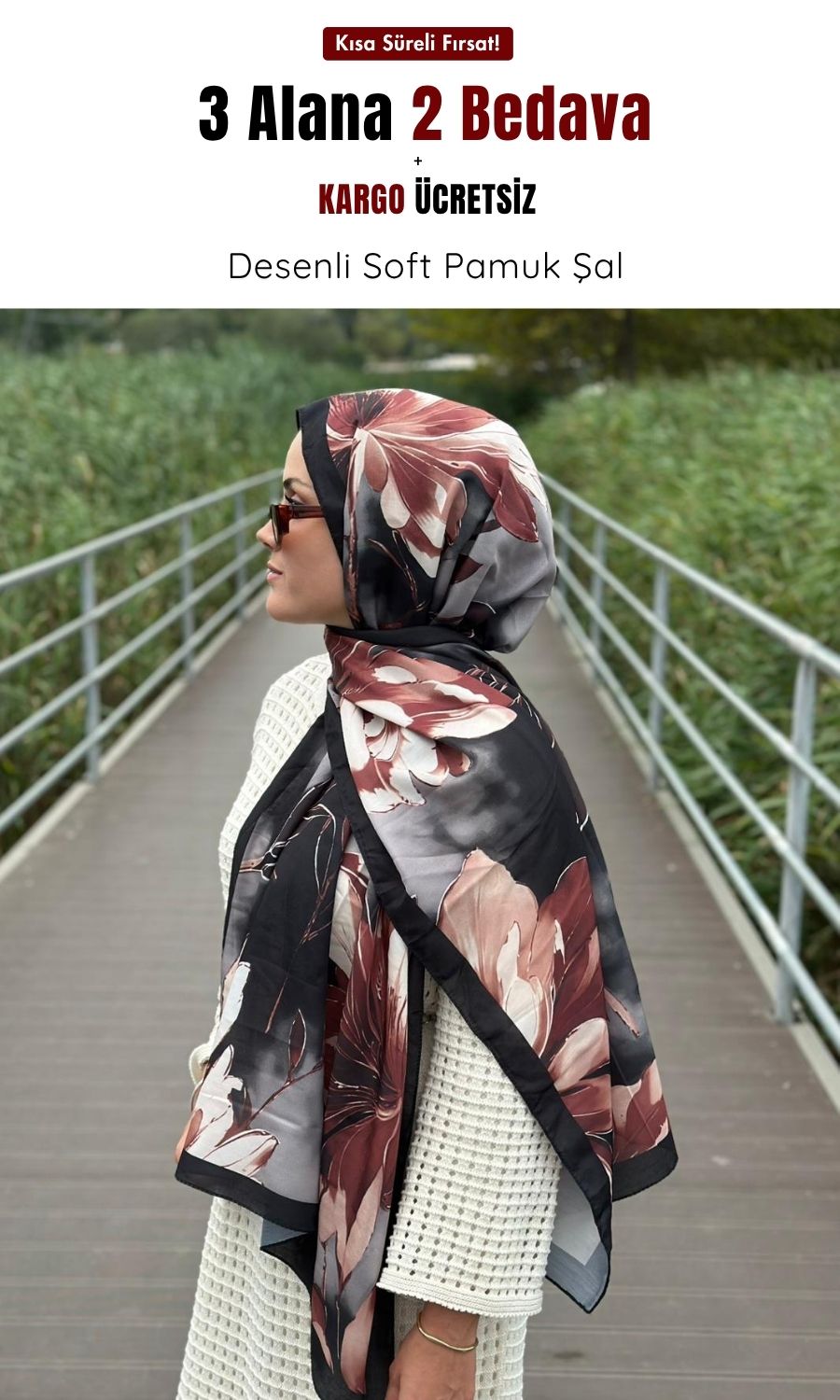 - Desenli Soft Pamuk Şal